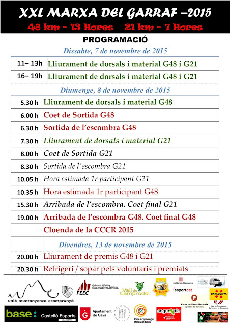 Us presentem el programa horari de la Marxa del Garraf i les hores de lliurament de dorsals.
