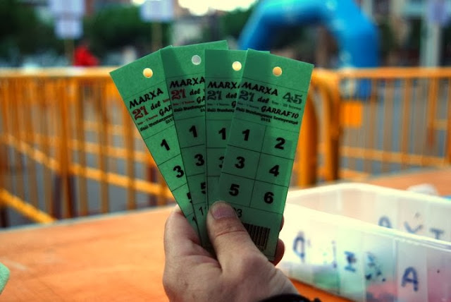Per alleugerir la sortida i per evitar friccions entre marxadors i corredors posarem davant la línia de sortida una gàbia de corredors de capacitat limitada, oberta a les 5.40 hores i tancada a les 5.55 hores. És obligatori fitxar per entrar i així es verificarà la seva participació. NO FITXAR implicarà que no s'ha pres la sortida i en conseqüència estarà DESQUALIFICAT. El temps començarà a comptar a partir del tret de sortida. Darrera la gàbia de corredors hi haurà la sortida de marxadors.